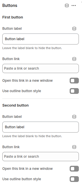 This block provides two buttons (First button and Second button). Each button includes the following configurations:
