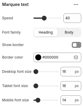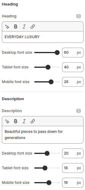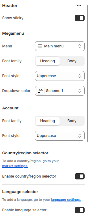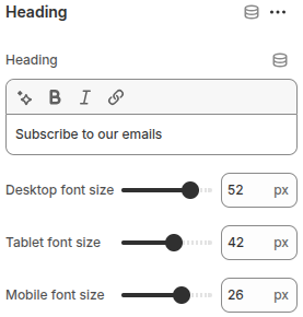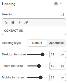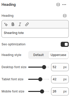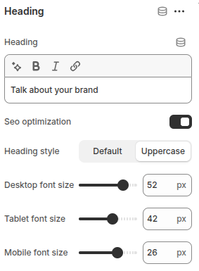 - Font: Select a heading font from Shopify’s font library (system fonts and Google Fonts).