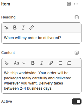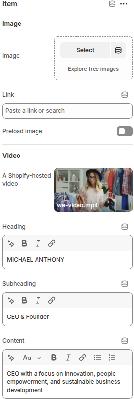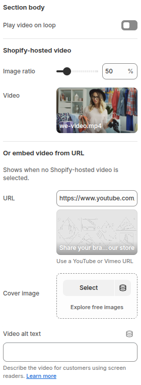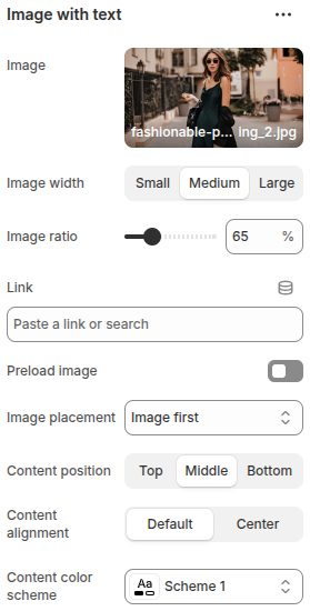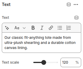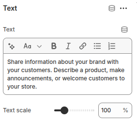 - Font: Choose a body text font from Shopify’s font library to ensure readability and brand consistency.