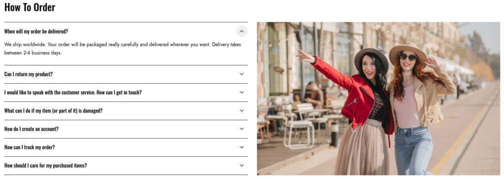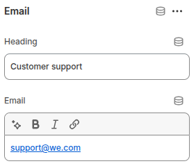 This section provides a contact form that allows customers to easily send inquiries directly through the store. In addition to the form, it can also display contact information such as a phone number and email address, giving customers more ways to reach out.