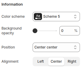 - Background: The Background setting in Shopify’s Color Scheme allows you to choose a solid color or apply a gradient as the backdrop for your store sections.