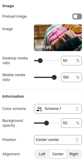 - Image ratio: Adjust the product image ratio (%) to control how images are cropped and displayed.