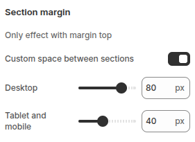 Section margin (Desktop) – Adjusts the spacing between sections when viewed on desktop devices.