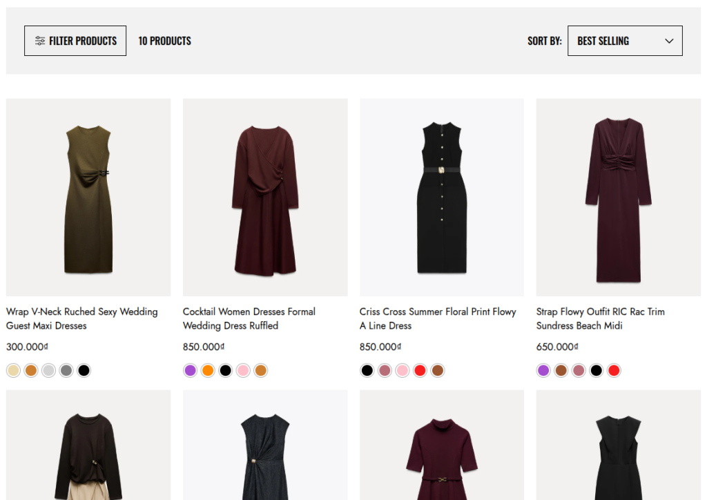 The Product grid section displays a list of products from a selected collection. It also supports built-in filtering and sorting (Sort by) options, helping customers refine and organize products with ease.