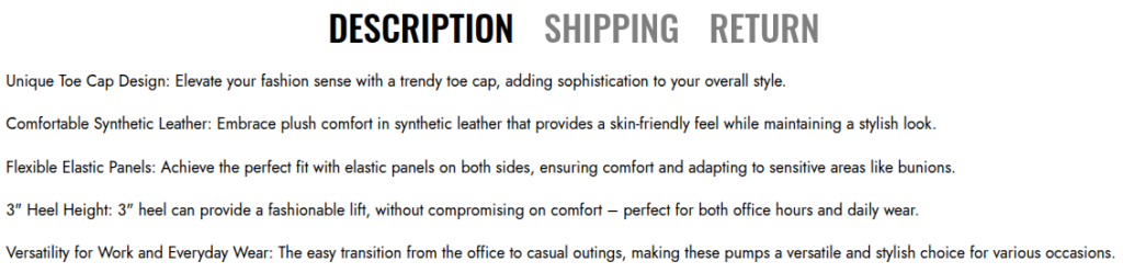 This block is used to display store-specific information such as Shipping or Return policies within a tab.