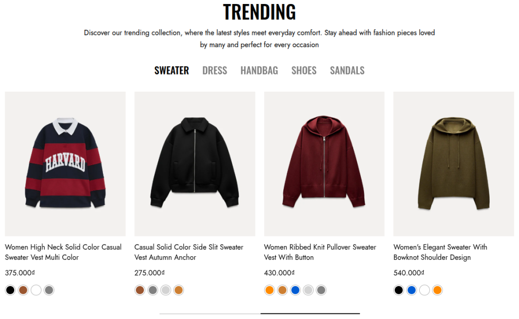 This section displays the products that customers have recently viewed. It helps users easily return to items they showed interest in.