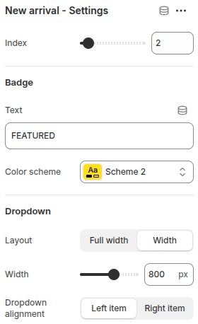 - Color scheme: Select a predefined color scheme to apply consistent styling to dropdown menus and pop-up windows, ensuring they align with the overall store design.